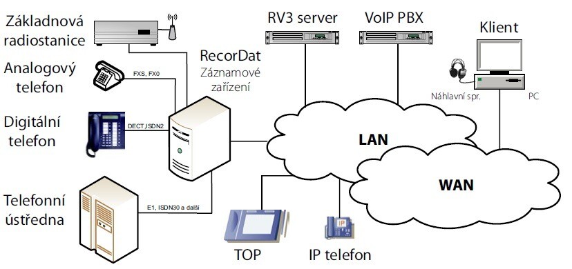 - Digitální záznam hovorů z různých typů telekomunikačních rozhraní (telefony analogové, digitální, VoIP hovory, telefonní ústředny, radiostanice atd.)