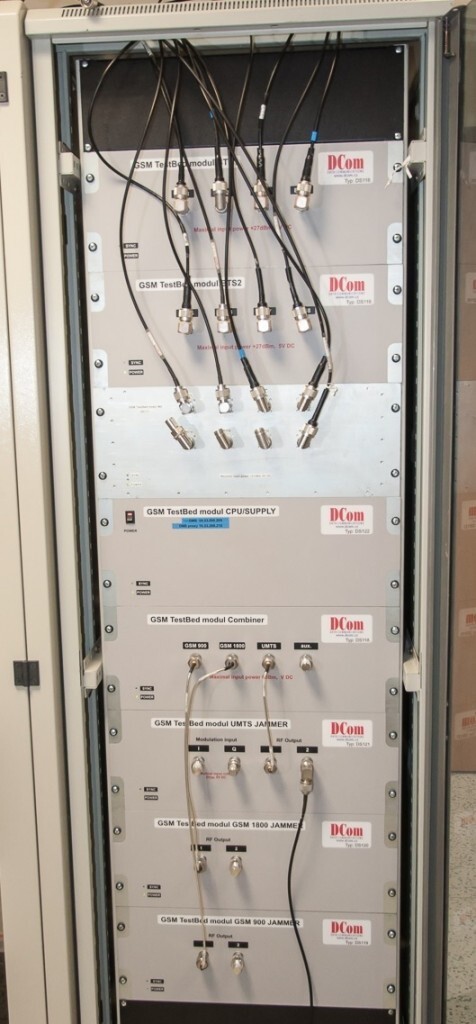 DCom, Ltd. s ro designed and manufactured a specialized test device – GSM TestBed, which allows to test the behavior of a network consisting of 1 to 16 base stations, 1 to 4 mobile phones and 12 internal interference generators on frequencies of 400MHz to 2.5GHz. (These are not noise generators.) The frequency range was chosen to cover all GSM / UMTS / LTE bands, ie. 800, 900, 1800 and 1900, 2100MHz, then the 450MHz band for the O2 CDMA system.
