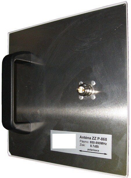Ruční panelová anténa určena pro pásmo 850-890 MHz. Na této frekvenci pracují zařízení pro dálkové vyčítání a sběr dat z měřících přístrojů – vodoměry, teploměry,.. Kompaktní rozměry a nízká hmotnost ulehčuje manipulaci a samotné vyčítání. Se ziskem 8,7 dBi je bezkonkurenční zařízení na trhu pro toto pásmo. Anténu lze zakázkově upravit dle požadavku zákazníka.